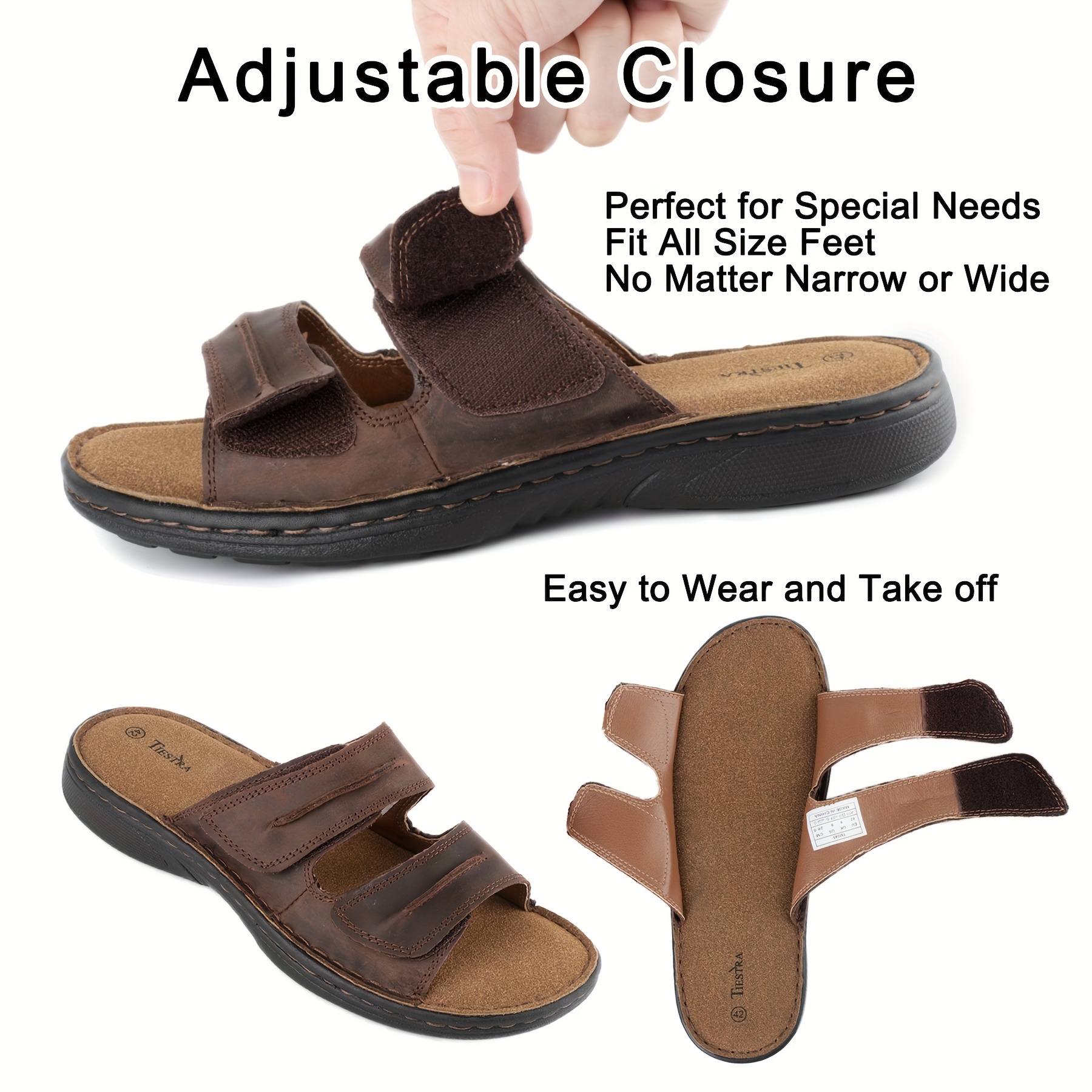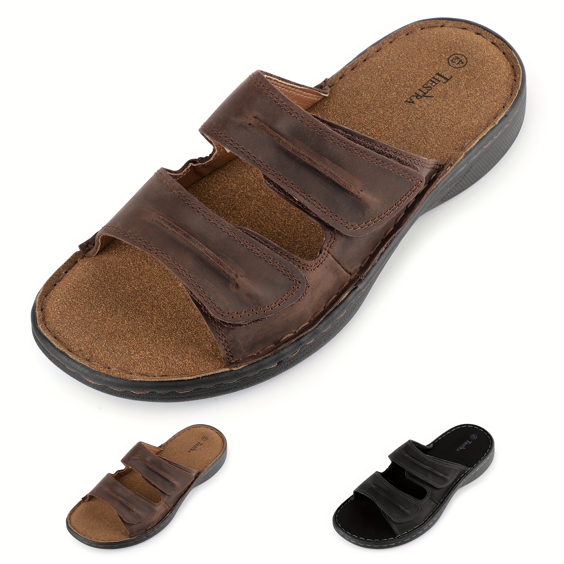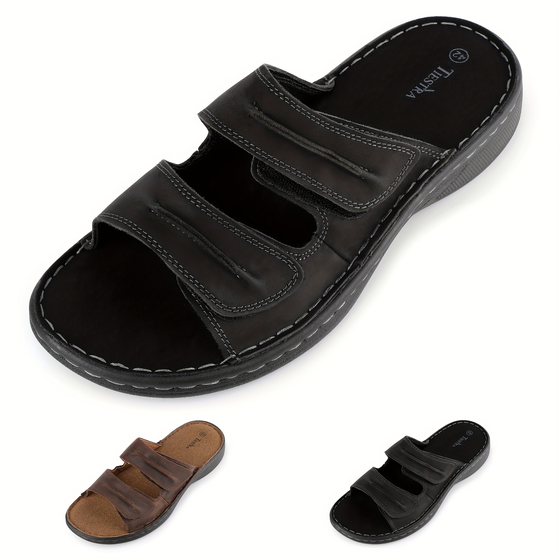 TIESTRA Adjustable Cover Slide Sandals for Men & Women ?C Comfortable, Lightweight, Summer Beach Slippers with Cushioning, Brown & Black Options, Indoor & Outdoor Use, Opentoe Footwear | Microfiber Insole