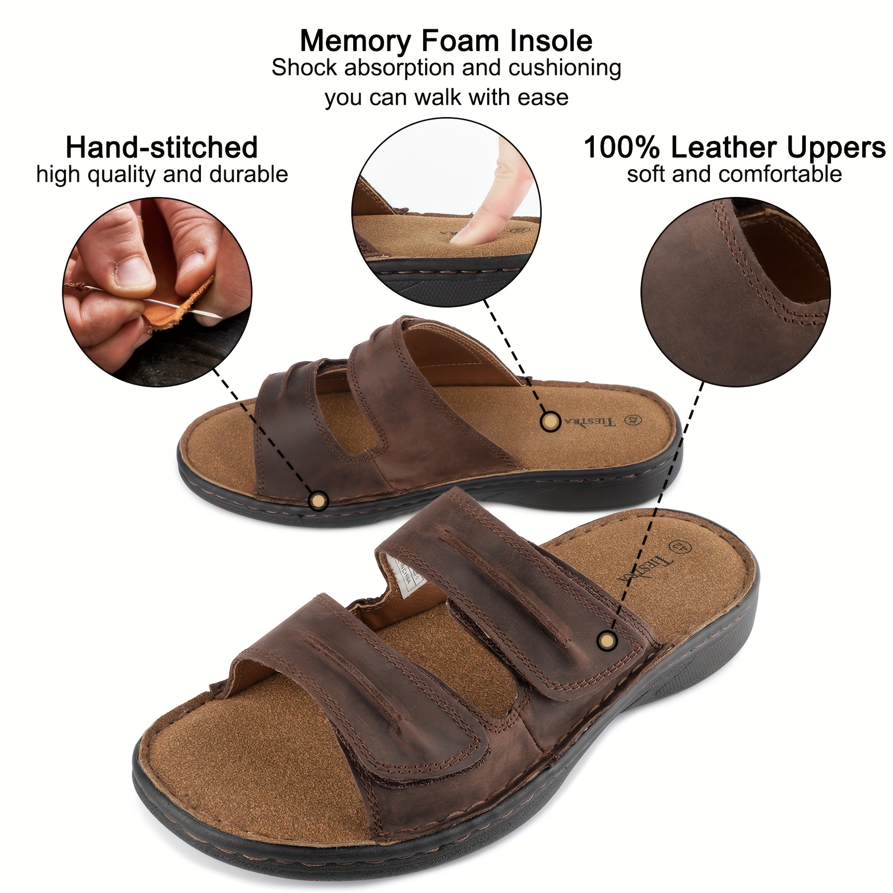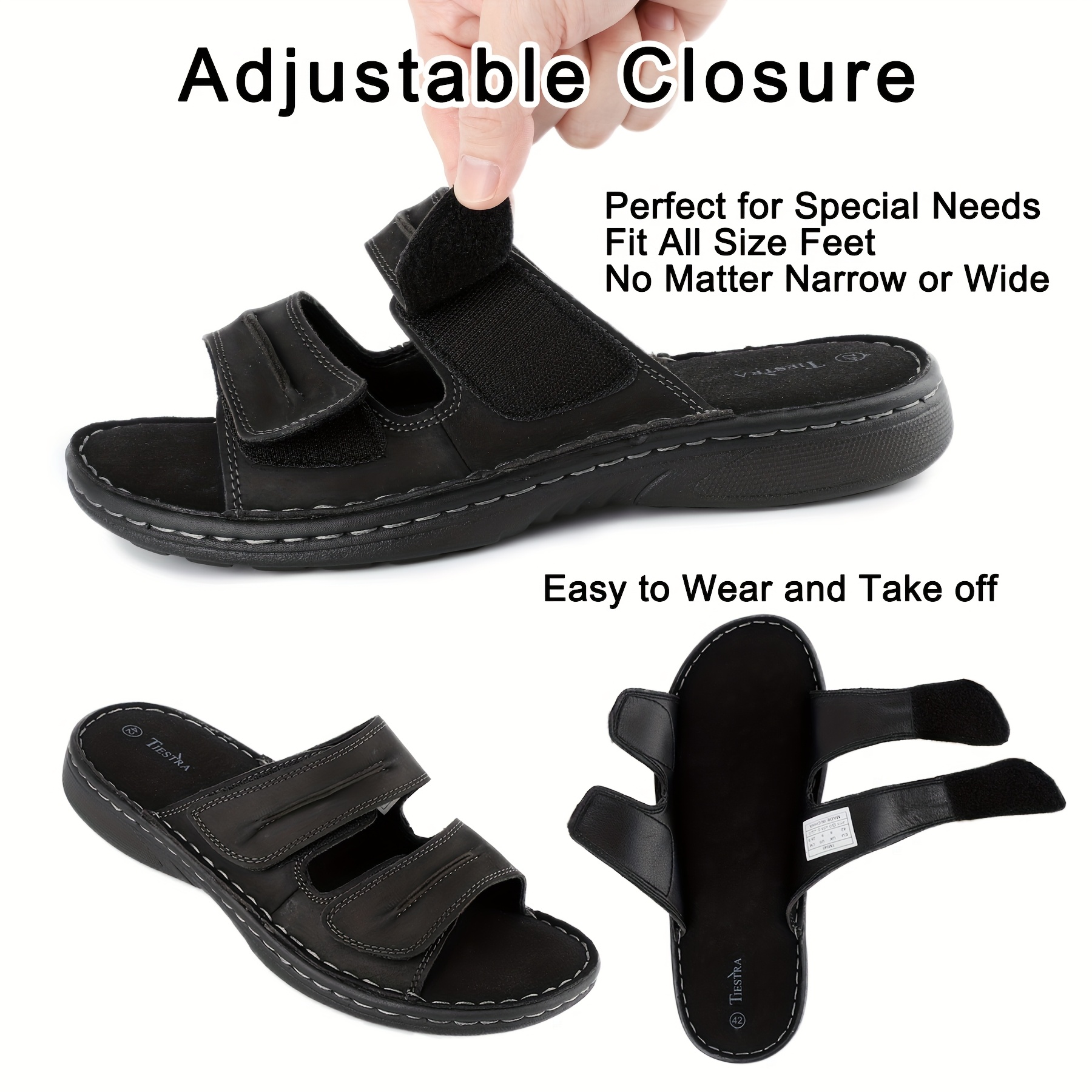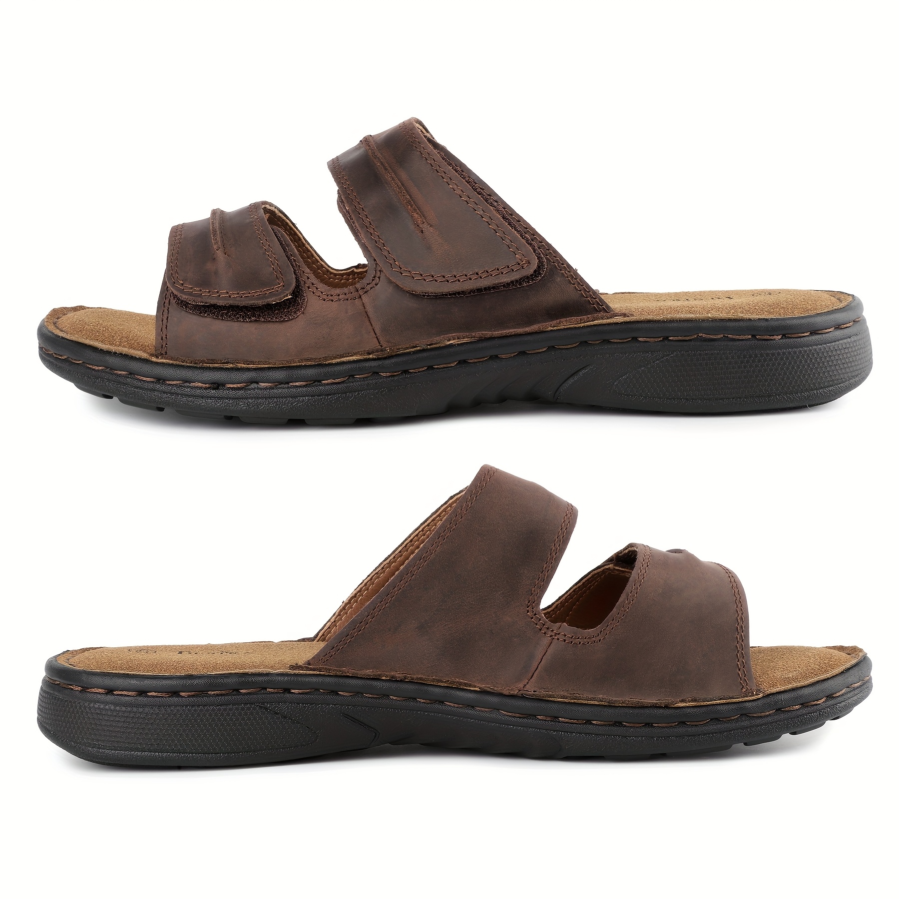 TIESTRA Adjustable Cover Slide Sandals for Men & Women ?C Comfortable, Lightweight, Summer Beach Slippers with Cushioning, Brown & Black Options, Indoor & Outdoor Use, Opentoe Footwear | Microfiber Insole