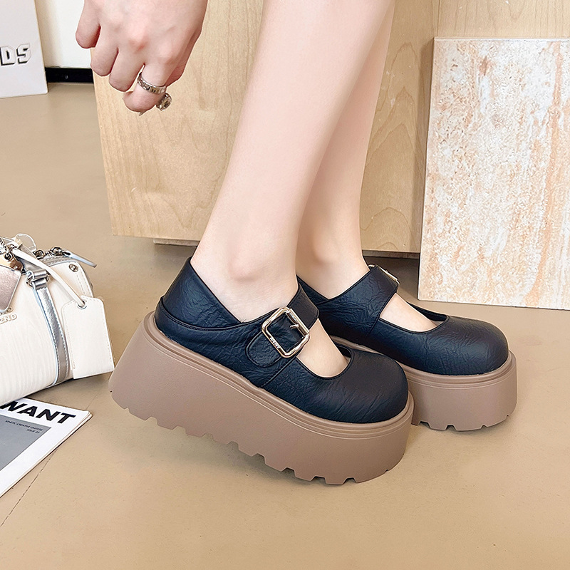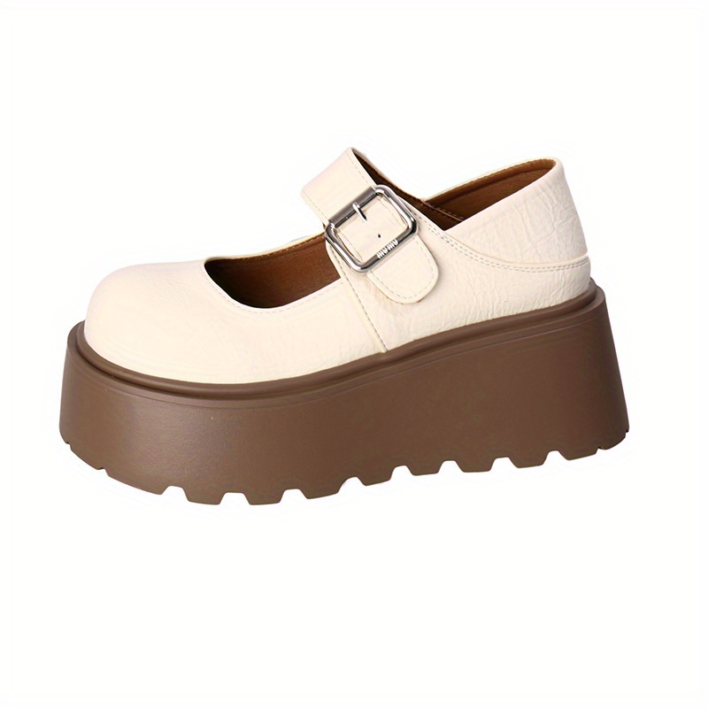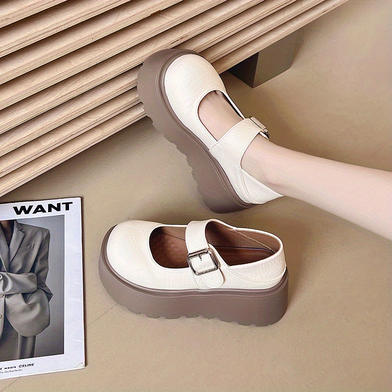 Women’S Summer Slip-On Platform Mary Jane Shoes – Casual Low-Top Round Toe with Ankle Strap, Thick Cushioned Sole, Breathable Fabric & EVA Insole, Black & Beige, Ladies Shoes, Comfortable Footwear, Durable Traction Footwear